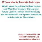 I have created a video presentation of this article. Click on this link: 58 Years After My Traumatic Brain Injury and What I Would Have Liked to Have Known Video Presentation 58 Years after My Open Skull Fracture, Right Frontal Lobe Damage, Severe Brain Bruise with Brain Stem Involvement and a 3-week long Coma Yesterday, I gave my presentation: Empowering Current and … [Read more...]