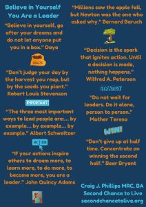 Your inspirational blog provides opportunities for others to abstract and apply some of these positive messages in their daily lives, and we hope that you will continue to share your messages of hope and encouragement by inspiring others to strive to new levels of achievement by turning adversity into opportunity! While we cannot change the direction of the wind, we can adjust our sails to meet the winds of change. Craig you remind us that those who weather change best are those who choose to embrace and adapt to it. Your inspirational messages continue to inspire others to chart their own course.