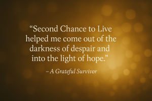 Our recovery is a slow process and Second Chance To Live makes this process a little easier. Second Chance to Live is a great tool for those of us who provide Peer Counseling to others with brain injuries. Your efforts also offer hope and hope is something we all need as we go through this process.