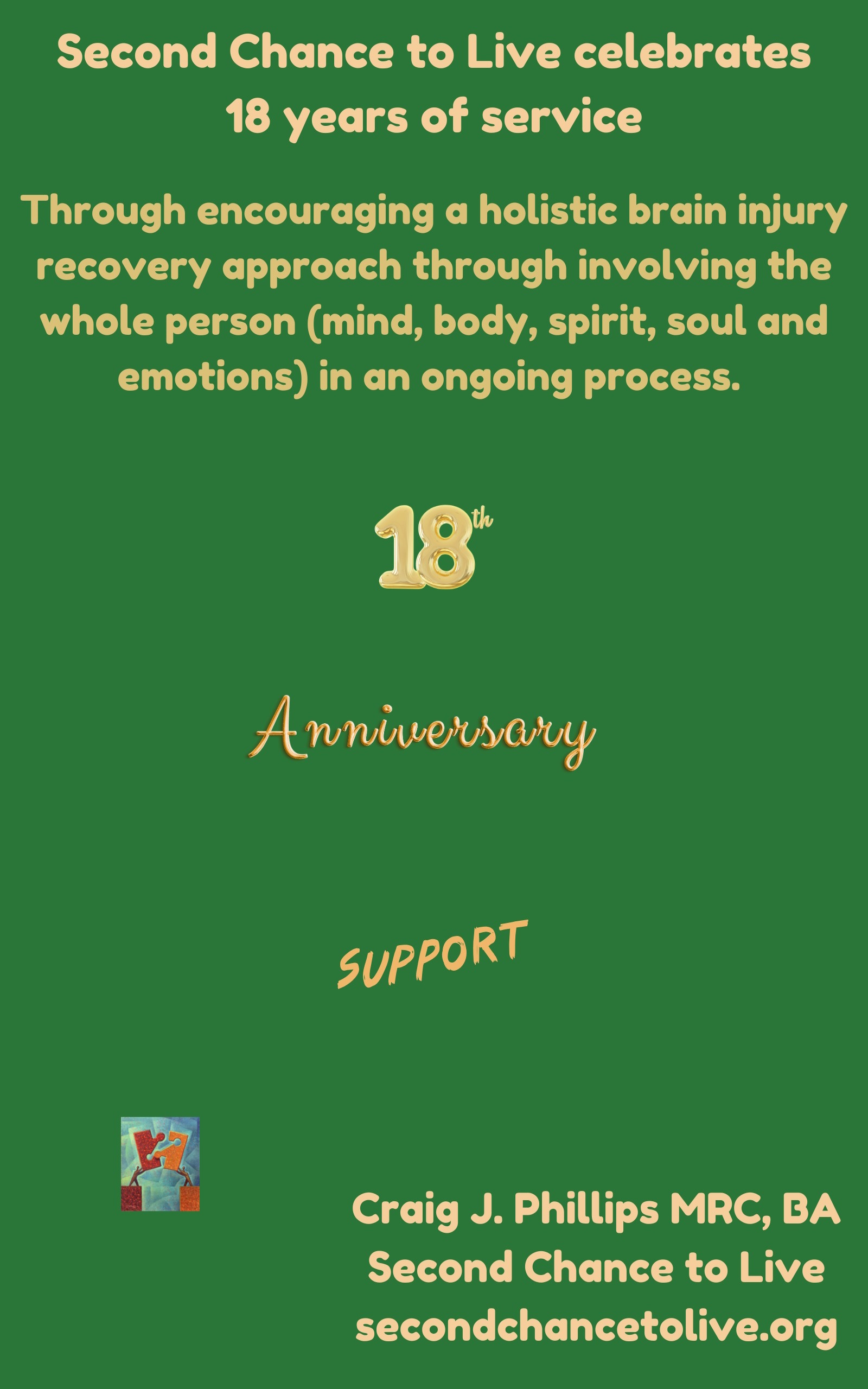 I found my way to the “Second Chance to Live” site while doing searches on traumatic brain injury. The author of the site, Craig J. Phillips, is nothing short of an inspiration to me.
